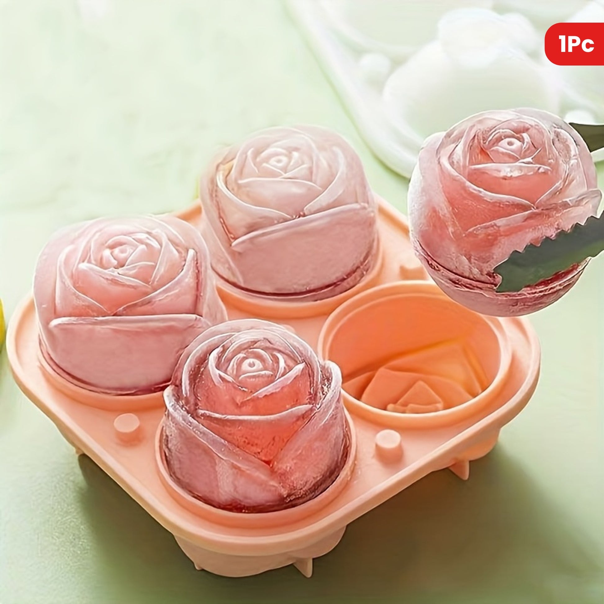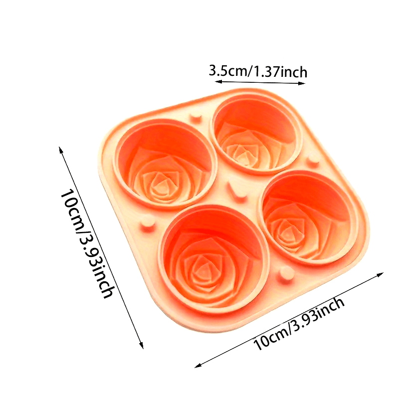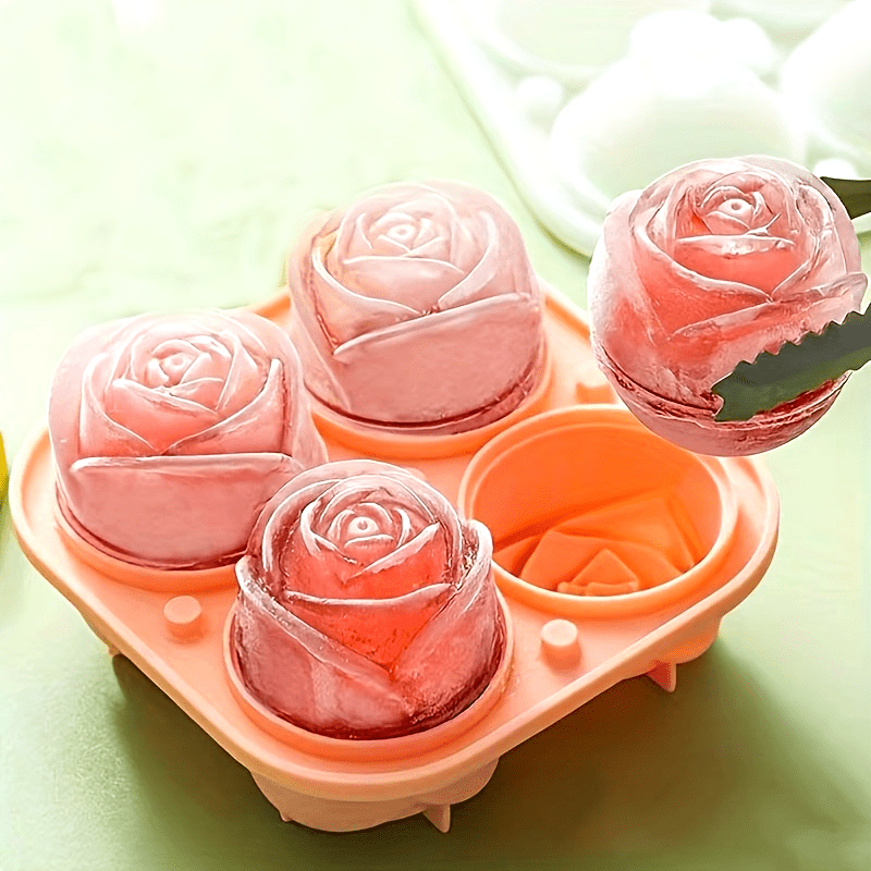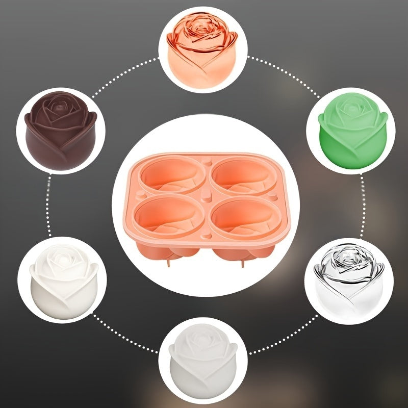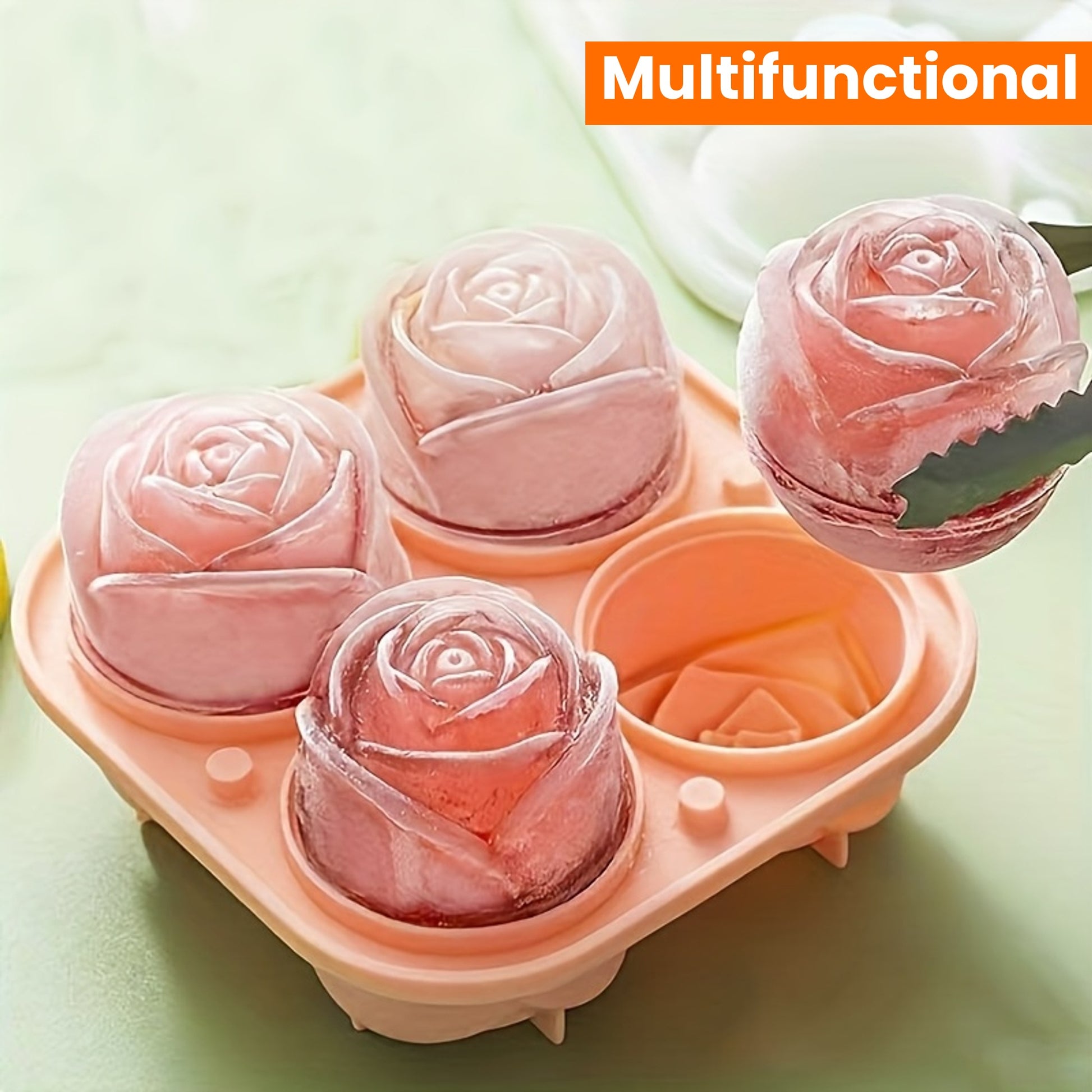 1pc 4 Grids Rose Ice Cube Mold, Multifunctional Chocolate, Jelly, Ice Cube Tray, RV Party Kitchen Refrigerator Supplies, for Bakery